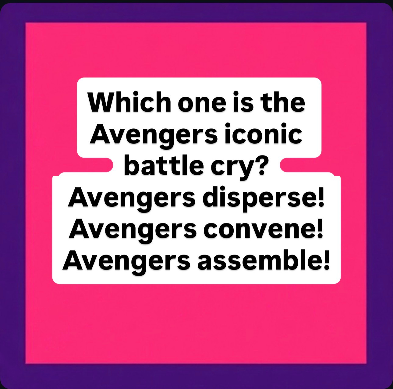 Fortunately, Captain America did not say, “Avengers disperse!” Disperse means to scatter. He could have said “Avengers convene!” since CONVENE and assemble are synonyms. Plus, CONVENE was a correct answer in a passage describing how several scholars of children’s literature CONVENED to discuss their favorite authors. However, “Avengers assemble!” sounds much more dramatic than “Avengers convene!”