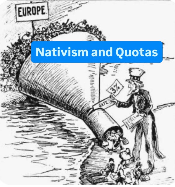 So why should you remember nativism and immigration quotas? APUSH test writers have paid close attention to the causes and consequences of nativism. You should to! Nativism refers to the anti-foreign sentiment favoring the interests of native-born people over the interests of immigrants. The rise of nativism in the period from 1890 to 1924 was a response to religious prejudice, economic insecurity, and pseudo-scientific theories about the alleged characteristics of different ethnic groups. Titled “The Only Way to Handle It,” the political cartoon at the beginning of this post has been featured in DBQs and as a prompt for a set of multiple-choice questions. Be sure you are familiar with the provisions of the Immigration Act of 1924. It ranks as one of the ten most frequently tested congressional acts on APUSH exams!