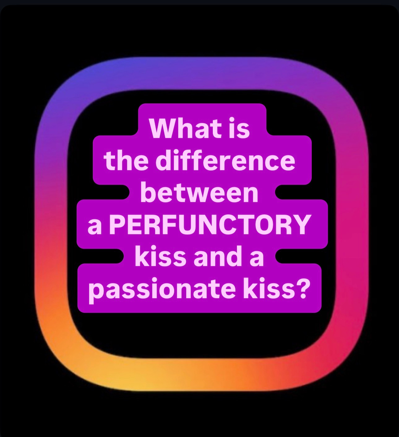 Whitney is right! There is a big difference between a passionate kiss and a PERFUNCTORY kiss. Passionate kisses are intimate expressions of a deep affection. In contrast, PERFUNCTORY kisses are routine and show little enthusiasm.